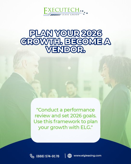 @ExecuTechLease Plan your 2026 growth with ELG. Review performance. Set goals. Identify support needs. Build your action plan. More POS deals? SaaS leasing? New verticals? We're here to help. 👉 https://t.co/TDU7OXGIvv #ISO #POS #SaaS #Leasing #2026Goals #Executelgleasing.com/apply-nowIvv #ISO #POS #SaaS #Leasing #2026Goals #Execute3Fx
