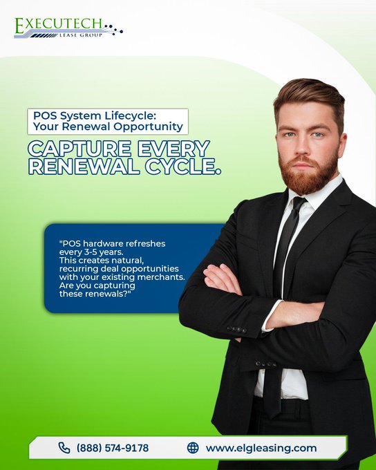 @ExecuTechLease POS hardware refreshes every 3-5 years. Natural, recurring deals with existing merchants. Are you capturing these renewals? Plan from day one. Capture every opportunity. 👉 https://t.co/TDU7OXGIvv #POS #Leasing #RecurringRevenue #Renewals #ISO #Executelgleasing.com/apply-nowIvv #POS #Leasing #RecurringRevenue #Renewals #ISO #Execute3bI